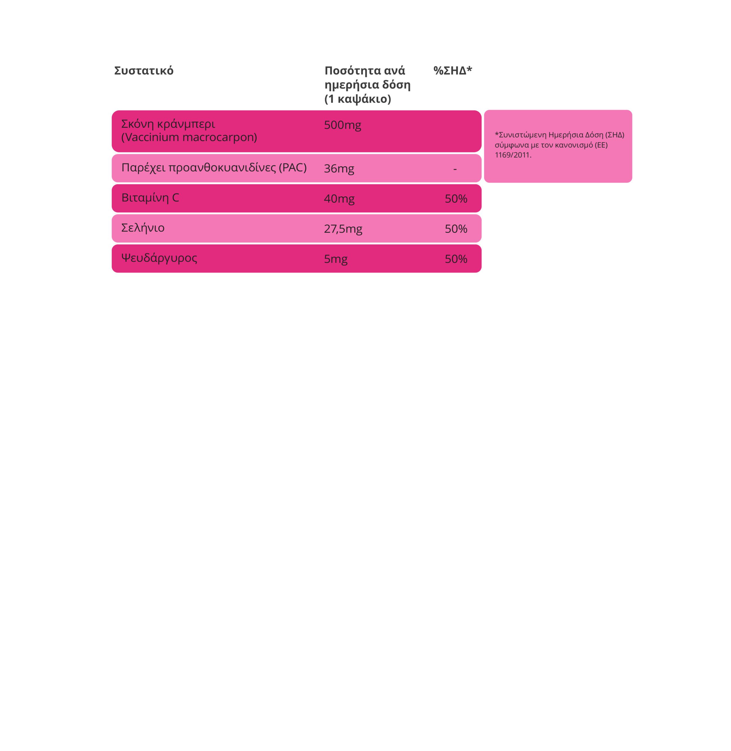 • Κάθε κάψουλα Cranberry Plus παρέχει όλα τα οφέλη 300ml χυμού cranberry χωρίς τα σάκχαρα και τις θερμίδες.