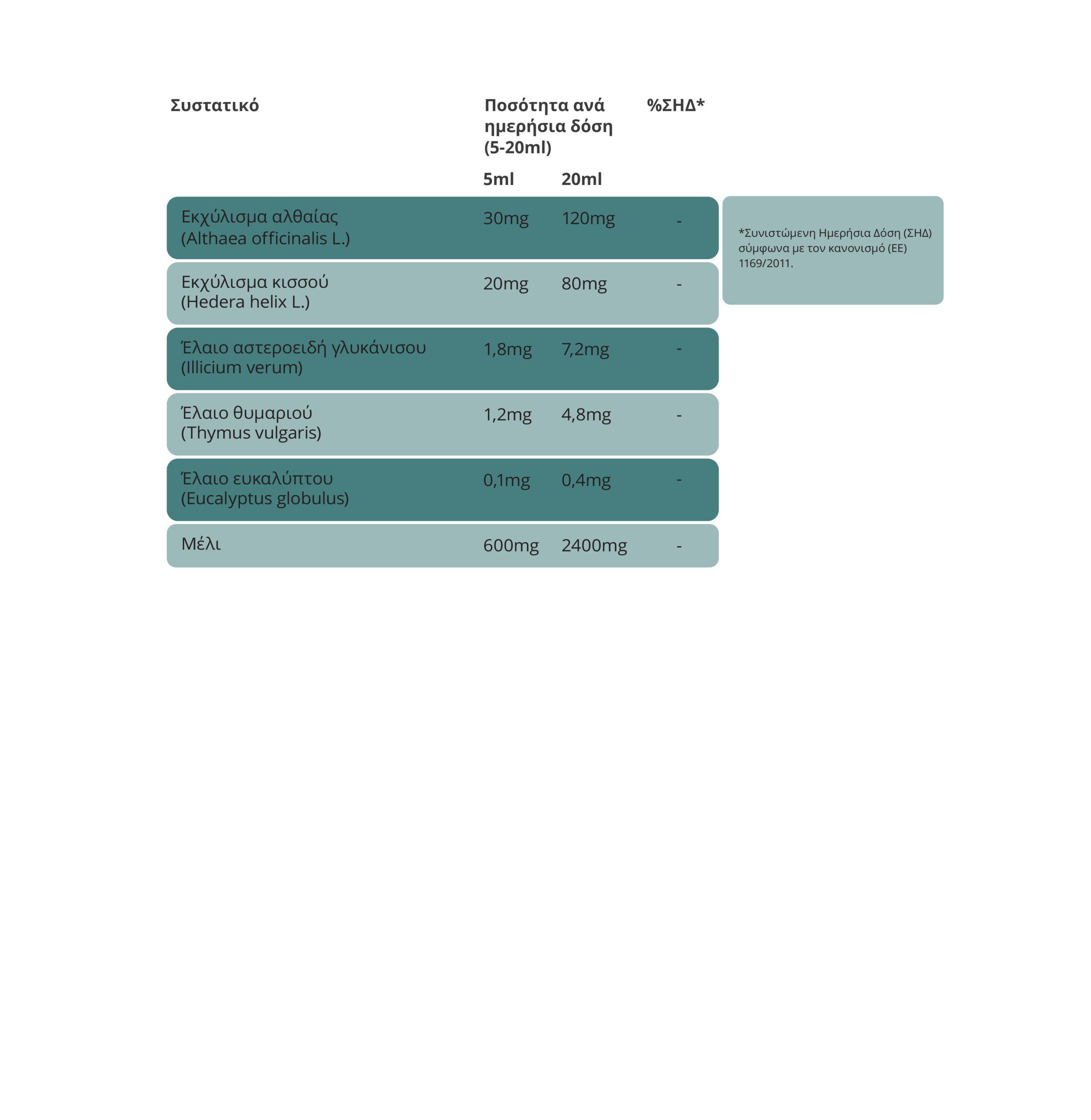 Ανακουφίζει τον ερεθισμένο λαιμό και τον βήχα, και βοηθά στην απόχρεμψη.