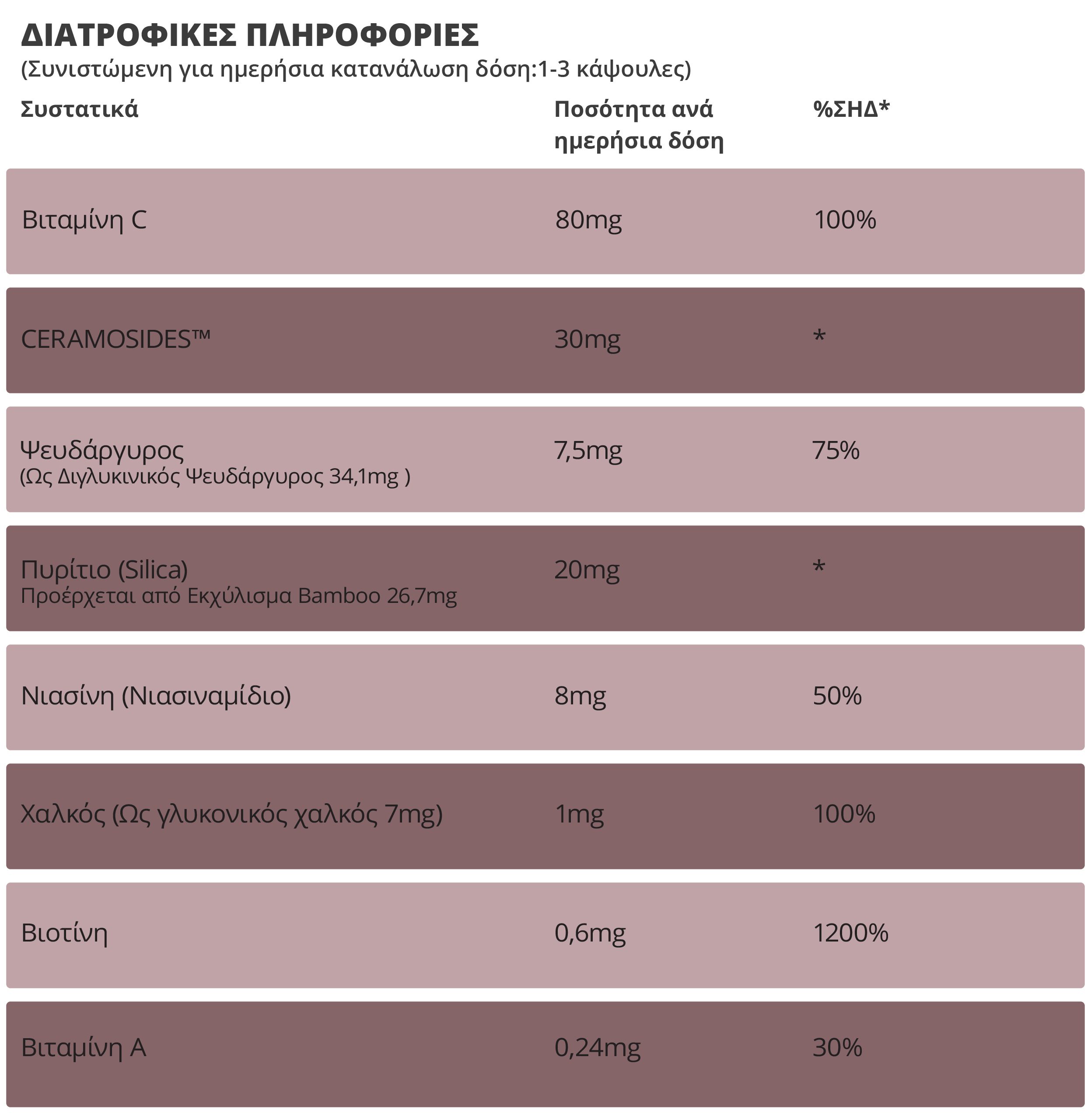 Το εκχύλισμα Bamboo αποτελεί πηγή πυριτίου, ενός συστατικού που απαντάται φυσιολογικά σε δομές όπως το δέρμα, τα μαλλιά και τα νύχια.